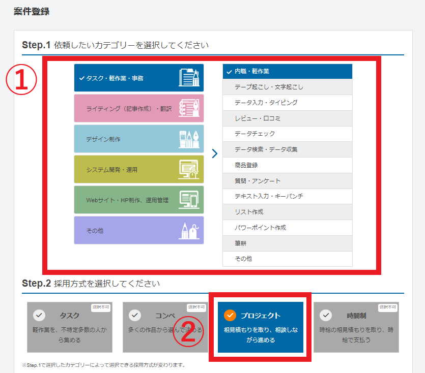 ※カテゴリによって、プロジェクト方式を選択できない場合がございます。