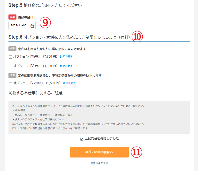 依頼内容を確認し、問題がなければ「案件を登録する」をクリックしてください。