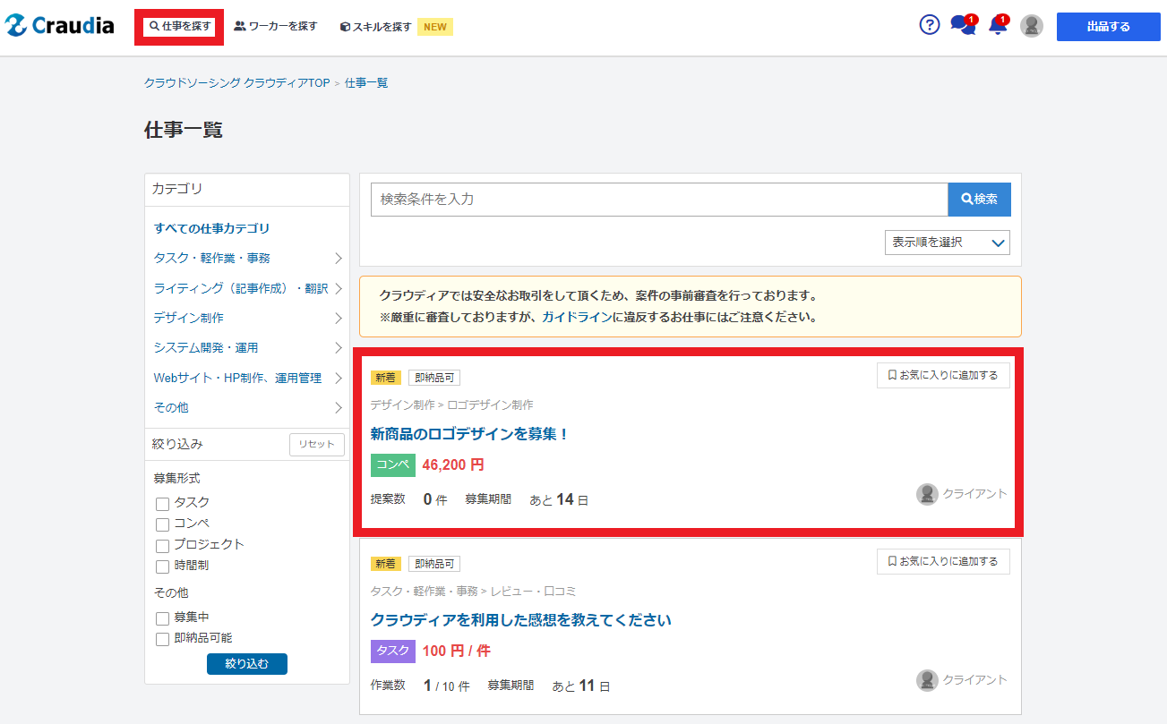 コンペ方式は、募集内容に対して発注者との相談なく制作物の提案を行う方式です。