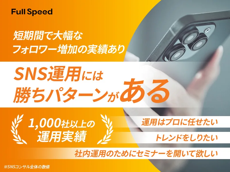 FullSpeedではSNS運用・広告運用で、大手から中小企業、海外運用までで1,000件以上の実績がございます。